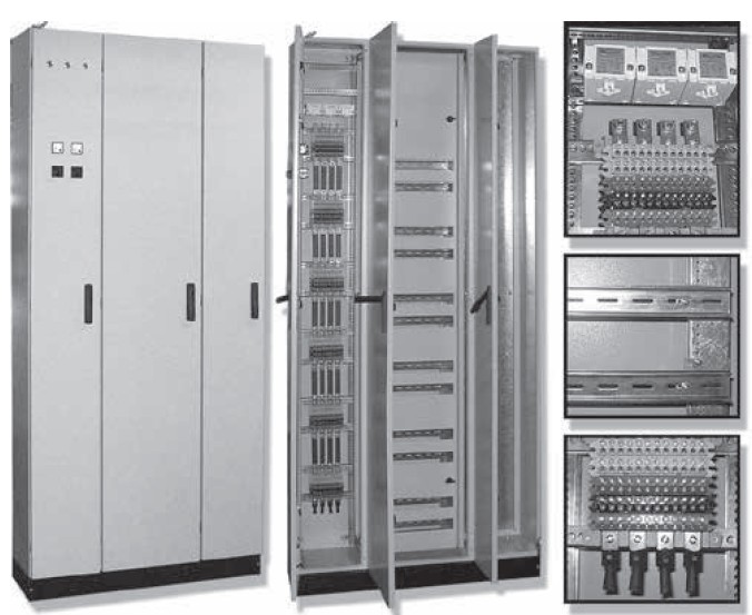 Para trabajos de montaje en obra son una solución eficaz para la llegada de cables tipo SINTENAX ya que acometen directamente a la bornera en el pasillo tipo ducto dando una terminación de calidad con alta seguridad al permitir un trabajo limpio y ordenado. Los ductos pueden ser a la izquierda o la derecha.